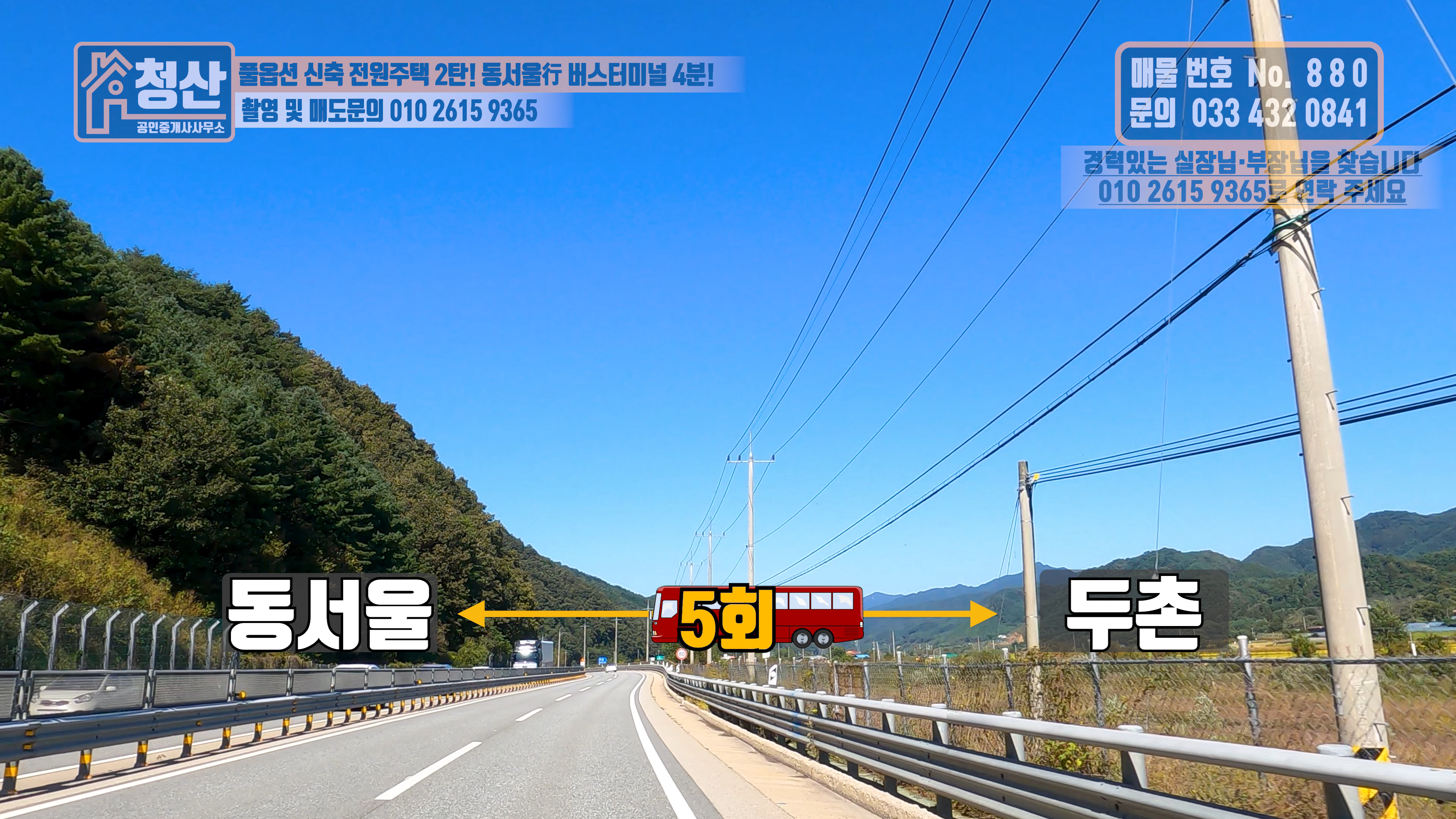 2023. 11. 16. 14:16[매물번호 880] 풀옵션 전원주택 2탄! 두촌 신축 전원주택! 동서울행 버스터미널 4분, 도보 6분거리 홍천읍 행 버스정류장 16회 정차